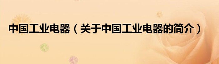 本文關于中國工業電器的簡介就講解完畢,希望對大家有所幫助。