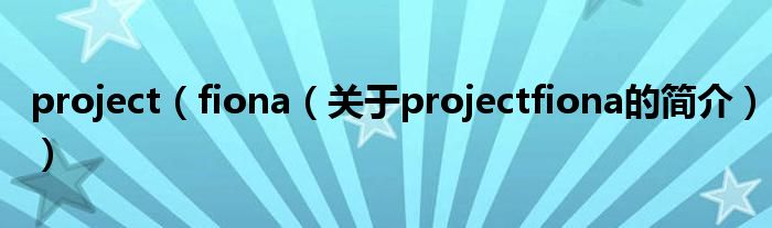 大家好,project fiona,關于project fiona的簡介很多人還不知道,現在讓我們一起來看看吧!