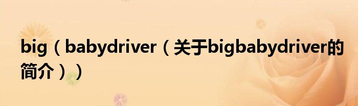 大家好,big baby driver,關于big baby driver的簡介很多人還不知道,現在讓我們一起來看看吧!