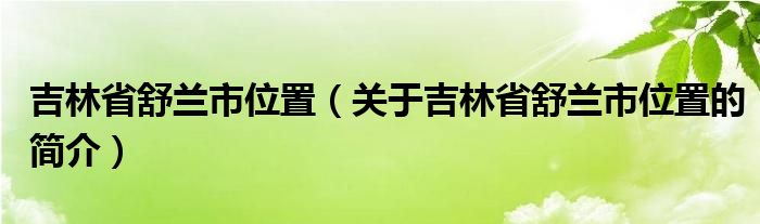 本文關于吉林省舒蘭市位置的簡介就講解完畢,希望對大家有所幫助。
