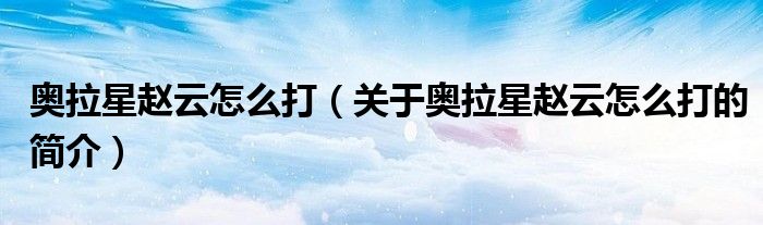 本文關于奧拉星趙云怎么打的簡介就講解完畢,希望對大家有所幫助。