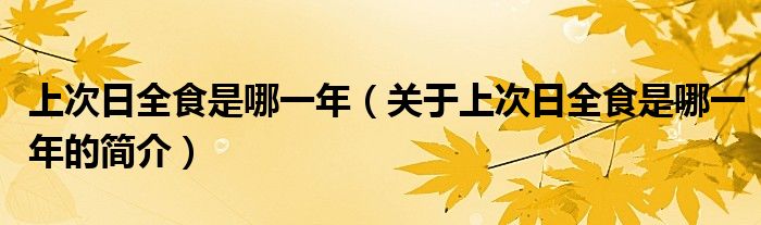 本文關(guān)于上次日全食是哪一年的簡(jiǎn)介就講解完畢,希望對(duì)大家有所幫助。