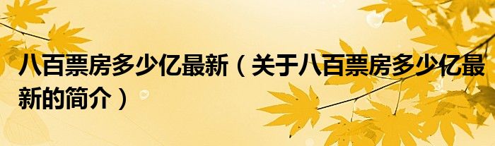 本文關于八百票房多少億最新的簡介就講解完畢,希望對大家有所幫助。