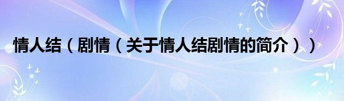 本文關于情人結 劇情的簡介就講解完畢,希望對大家有所幫助。