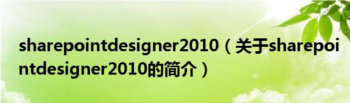 本文關于sharepointdesigner2010的簡介就講解完畢,希望對大家有所幫助。