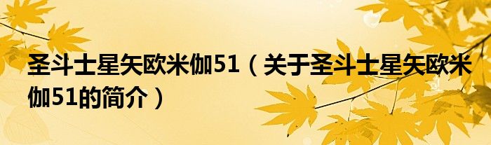 本文關于圣斗士星矢歐米伽51的簡介就講解完畢,希望對大家有所幫助。