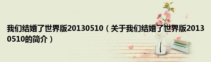 本文關于我們結婚了世界版20130510的簡介就講解完畢,希望對大家有所幫助。