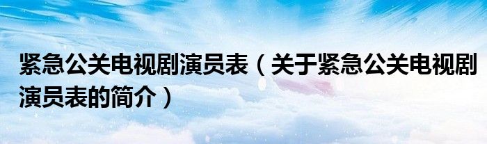 本文關于緊急公關電視劇演員表的簡介就講解完畢,希望對大家有所幫助。