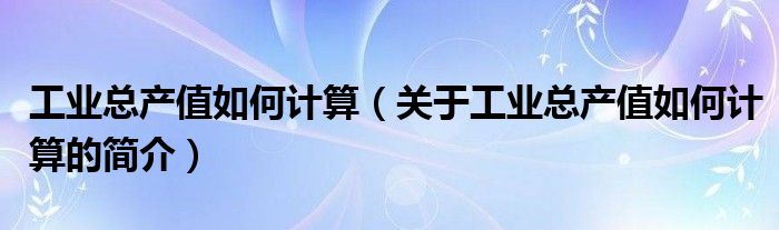 本文關于工業總產值如何計算的簡介就講解完畢,希望對大家有所幫助。