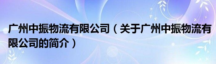 本文關于廣州中振物流有限公司的簡介就講解完畢,希望對大家有所幫助。