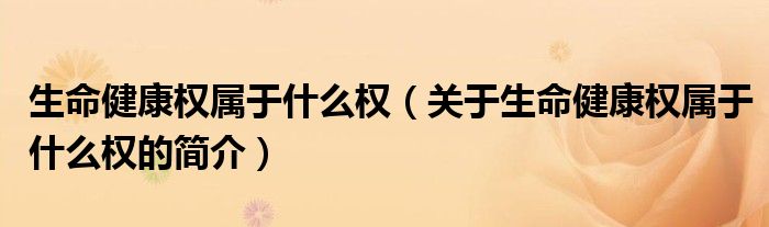 本文關于生命健康權屬于什么權的簡介就講解完畢,希望對大家有所幫助。