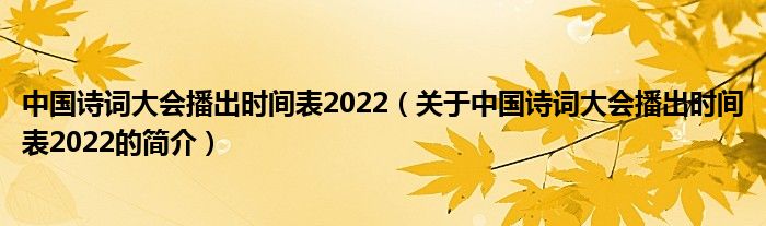 本文關于中國詩詞大會播出時間表2022的簡介就講解完畢,希望對大家有所幫助。