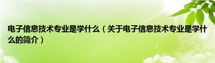 本文關于電子信息技術專業是學什么的簡介就講解完畢,希望對大家有所幫助。