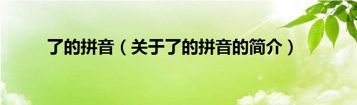大家好,了的拼音,關(guān)于了的拼音的簡介很多人還不知道,現(xiàn)在讓我們一起來看看吧!