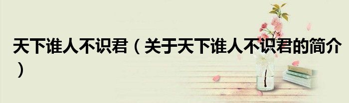 大家好,天下誰人不識君,關于天下誰人不識君的簡介很多人還不知道,現在讓我們一起來看看吧!
