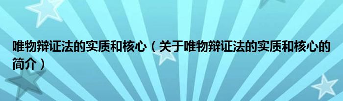大家好,唯物辯證法的實質和核心,關于唯物辯證法的實質和核心的簡介很多人還不知道,現在讓我們一起來看看吧!