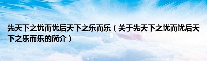 本文關(guān)于先天下之憂而憂后天下之樂而樂的簡介就講解完畢,希望對大家有所幫助。