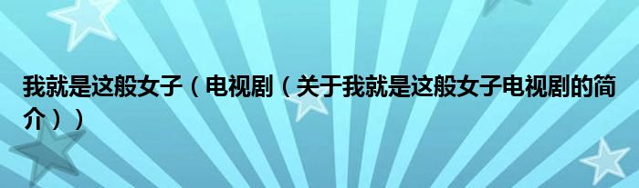 本文關(guān)于我就是這般女子 電視劇的簡(jiǎn)介就講解完畢,希望對(duì)大家有所幫助。