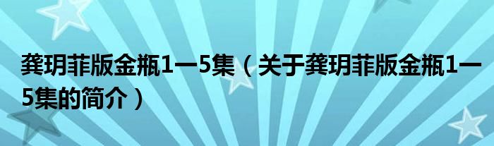 本文關于龔玥菲版金瓶1一5集的簡介就講解完畢,希望對大家有所幫助。