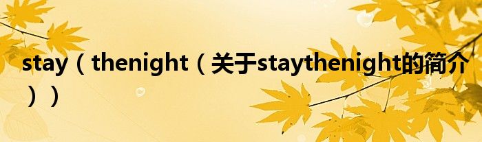 大家好,stay the night,關于stay the night的簡介很多人還不知道,現在讓我們一起來看看吧!