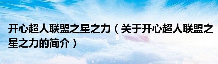 大家好,開心超人聯盟之星之力,關于開心超人聯盟之星之力的簡介很多人還不知道,現在讓我們一起來看看吧!