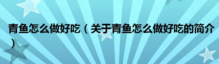 本文關于青魚怎么做好吃的簡介就講解完畢,希望對大家有所幫助。