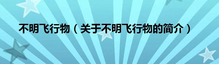 本文關(guān)于不明飛行物的簡(jiǎn)介就講解完畢,希望對(duì)大家有所幫助。
