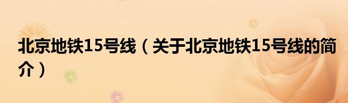 本文關(guān)于北京地鐵15號線的簡介就講解完畢,希望對大家有所幫助。