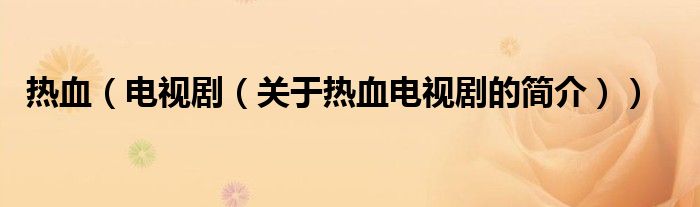 本文關(guān)于熱血 電視劇的簡介就講解完畢,希望對大家有所幫助。