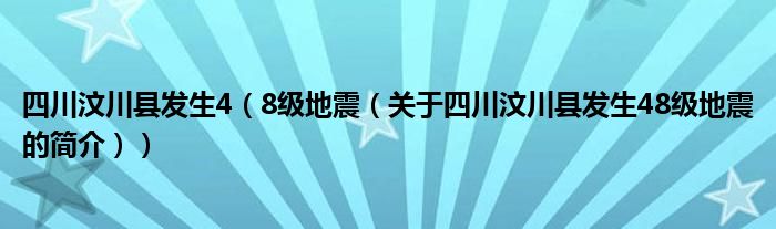 本文關(guān)于四川汶川縣發(fā)生4 8級地震的簡介就講解完畢,希望對大家有所幫助。
