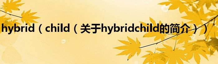 大家好,hybrid child,關于hybrid child的簡介很多人還不知道,現在讓我們一起來看看吧!