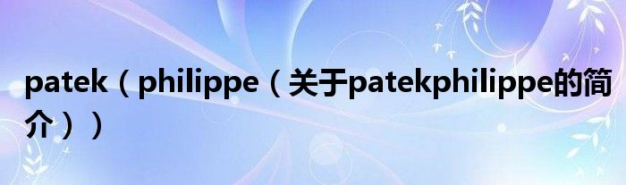 大家好,patek philippe,關于patek philippe的簡介很多人還不知道,現在讓我們一起來看看吧!