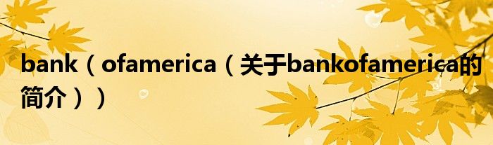 大家好,bank of america,關于bank of america的簡介很多人還不知道,現(xiàn)在讓我們一起來看看吧!