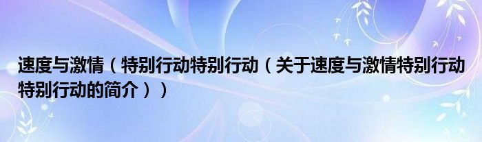 本文關于速度與激情 特別行動特別行動的簡介就講解完畢,希望對大家有所幫助。