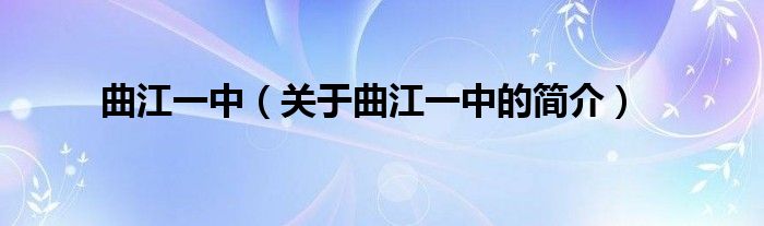 大家好,曲江一中,關于曲江一中的簡介很多人還不知道,現在讓我們一起來看看吧!