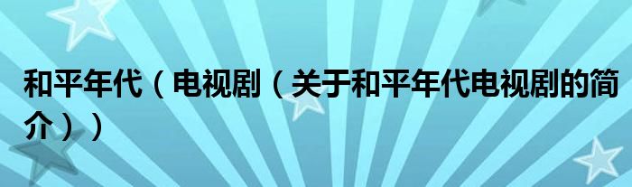 本文關于和平年代 電視劇的簡介就講解完畢,希望對大家有所幫助。