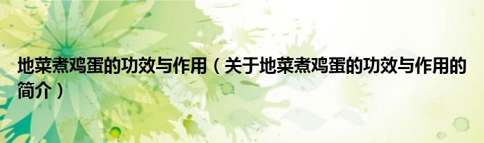 本文關于地菜煮雞蛋的功效與作用的簡介就講解完畢,希望對大家有所幫助。
