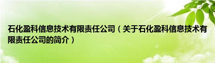 本文關于石化盈科信息技術有限責任公司的簡介就講解完畢,希望對大家有所幫助。