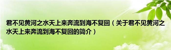 本文關(guān)于君不見黃河之水天上來(lái)奔流到海不復(fù)回的簡(jiǎn)介就講解完畢,希望對(duì)大家有所幫助。