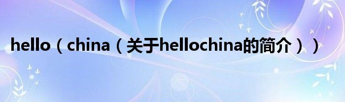 本文關于hello china的簡介就講解完畢,希望對大家有所幫助。