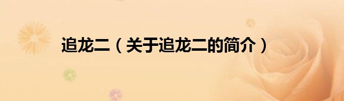 大家好,追龍二,關于追龍二的簡介很多人還不知道,現在讓我們一起來看看吧!