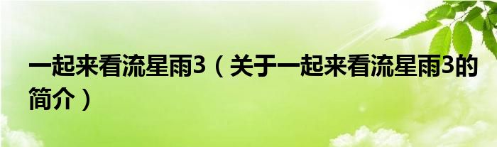 本文關于一起來看流星雨3的簡介就講解完畢,希望對大家有所幫助。
