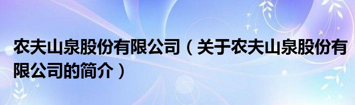 本文關(guān)于農(nóng)夫山泉股份有限公司的簡(jiǎn)介就講解完畢,希望對(duì)大家有所幫助。