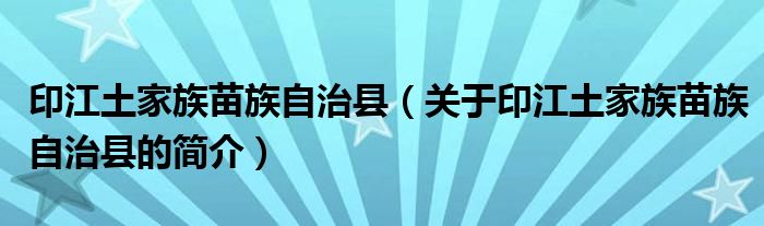 本文關于印江土家族苗族自治縣的簡介就講解完畢,希望對大家有所幫助。