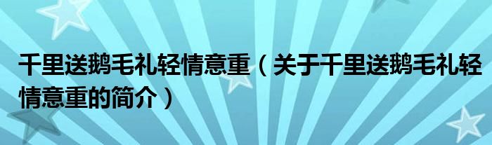 大家好,千里送鵝毛禮輕情意重,關(guān)于千里送鵝毛禮輕情意重的簡(jiǎn)介很多人還不知道,現(xiàn)在讓我們一起來(lái)看看吧!