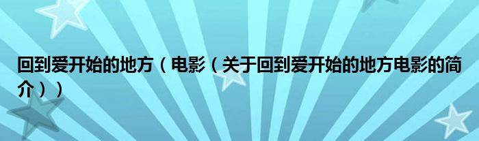 大家好,回到愛開始的地方 電影,關(guān)于回到愛開始的地方 電影的簡介很多人還不知道,現(xiàn)在讓我們一起來看看吧!