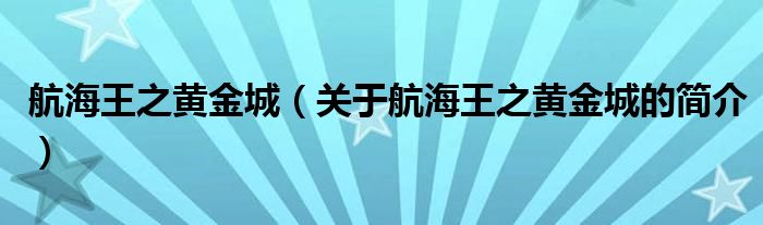 大家好,航海王之黃金城,關于航海王之黃金城的簡介很多人還不知道,現在讓我們一起來看看吧!