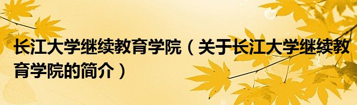 大家好,長江大學繼續教育學院,關于長江大學繼續教育學院的簡介很多人還不知道,現在讓我們一起來看看吧!