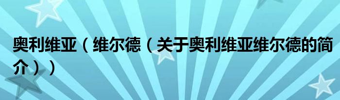 本文關于奧利維亞 維爾德的簡介就講解完畢,希望對大家有所幫助。