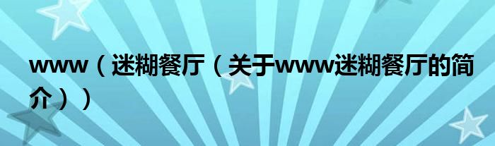 本文關于www 迷糊餐廳的簡介就講解完畢,希望對大家有所幫助。